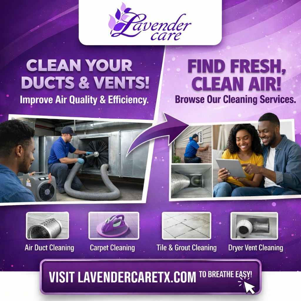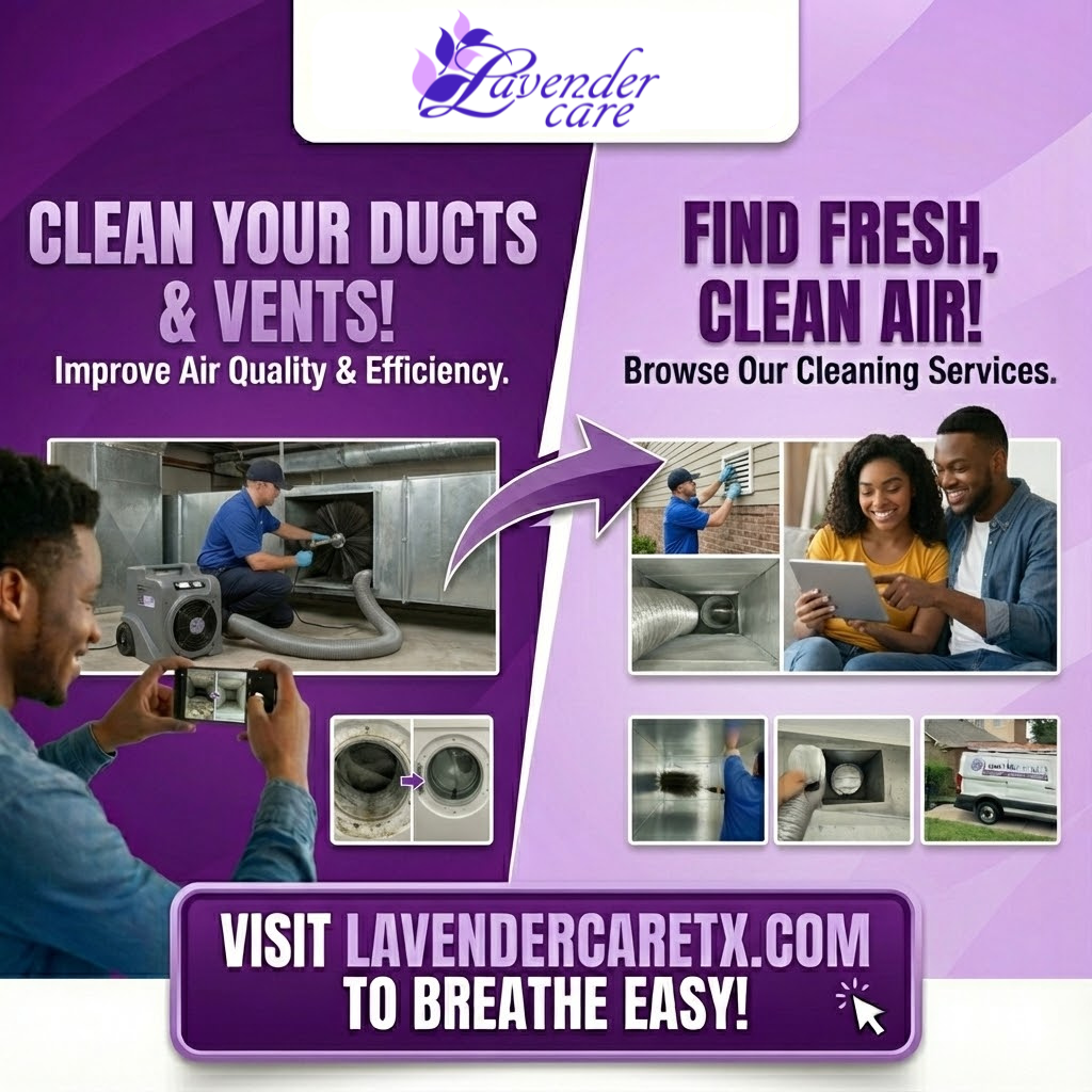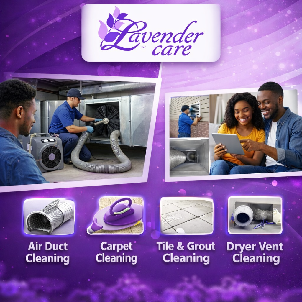 Improve your home’s air quality with Lavender Care’s air duct, dryer vent, and carpet cleaning services. Your home is where